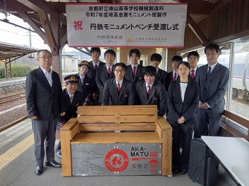 京都丹後鉄道(丹鉄)を運行するWILLER TRAINS株式会社(京都府宮津市、飯島徹代表)は、京都府立峰山高等学校(京都府京丹後市)機械創造科の生徒が製作した「丹鉄モニュメントベンチ」の完成を受け、2025年12月12日に「天橋立」駅(京都府宮津市)で受渡し式を実施した。