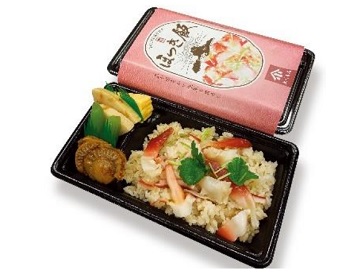 販売商品は11日がほっき飯弁当(写真)・トマト・いちご、12日がほっき飯弁当。