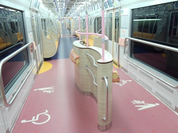 子どもが車窓を眺めやすいよう、床面高さ500mm~1240mm×幅1,930mmの大型窓を設置したほか、スペース内には通常の優先席も設置した。