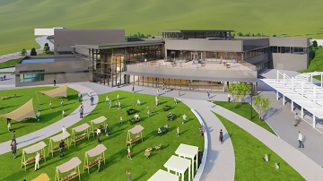 同施設は、ひな壇状(テラス)の地形を活かし、福祉・科学学習施設を核に、ふれあい交流施設、自然交流施設、健康増進施設などを配置することで、総合的に学び楽しめる交流拠点として整備したもの。